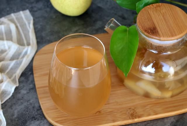 3.加冰糖调味后倒出梨汁。过年大鱼大肉的吃多了容易上火,可以喝一些小吊梨汤清热去火。